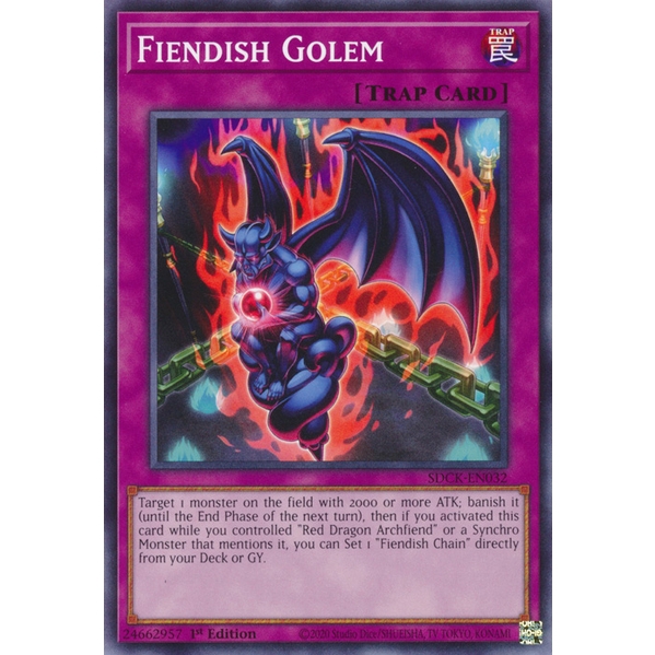 [ Bài Yugioh Chính Hãng ] Fiendish Golem - SDCK-EN032 - Common 1st Edition